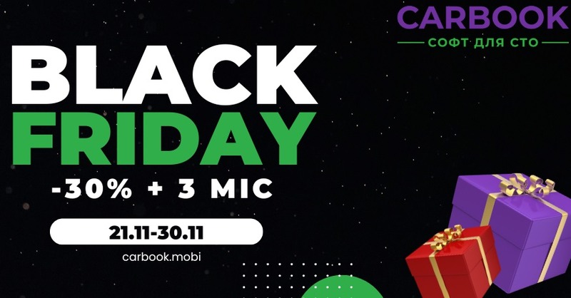 Наш партнер, програмне забезпечення для автосервісів Carbook, оголошує акцію до Чорної П’ятниці. Пропозиція стосується як нових, так і діючих користувачів системи: автосервіси можуть отримати вигідні знижки при оплаті доступу на тривалий період.