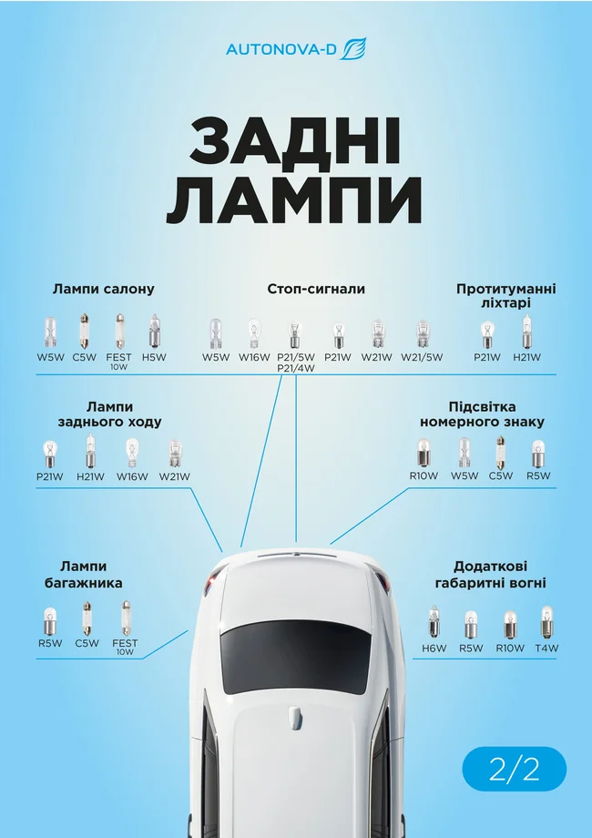 Автомобільні лампи: корисні постери для швидкого підбору за цоколем