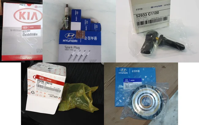 Залежно від типу деталі та її розміру вона може бути упакована в пластиковий пакет, тонку кольорову коробку картонну коробку – тонку або, навпаки, доволі щільну, звичайну картонну коробку. Нижче наведень деякі приклади пакування оригінальних запчастин до корейського ринку. Бувають й інші варіанти, але загальний принцип у них однаковий.