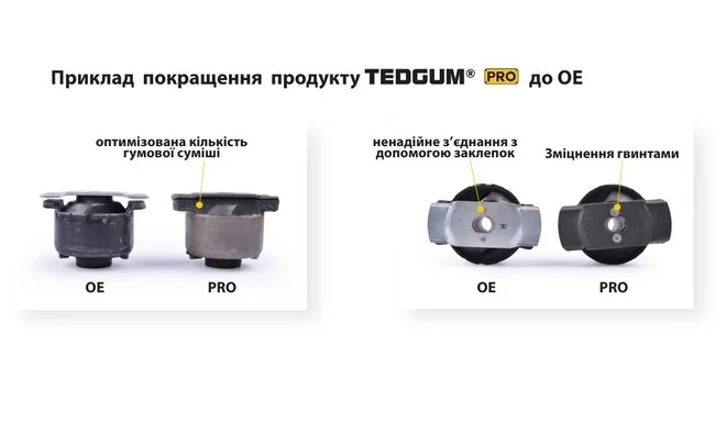 Під час розробки інженери TEDGUM аналізують слабкі місця оригінальних деталей і намагаються усунути їх у своїх рішеннях.