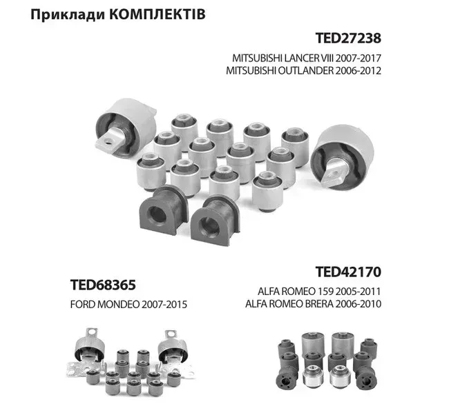 1. TEDGUM пропонує готові комплекти сайлентблоків