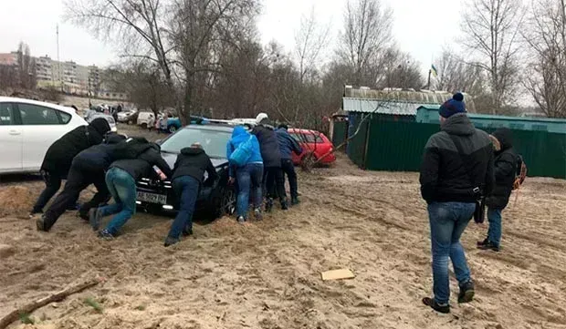 Настав час прощатися, ми стиснули один одному руки та були вже готові розійтись, але декілька автомобілістів на пляжі потребували допомоги. Не дивлячись на знаки заборони на в'їзд на пляж, чимало виявилося тих, хто втиснувся поміж обмежуючих стовпів і таки в'їхав на пляж. Деякі опинилися у пастці. Не вагаючись, ми прийшли на допомогу і визволили три автівки з піщаного полону.
