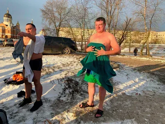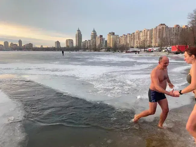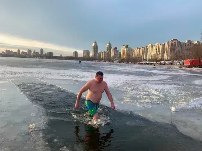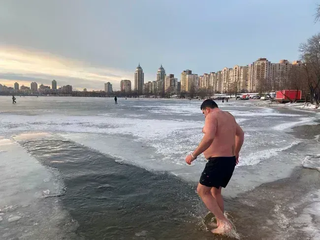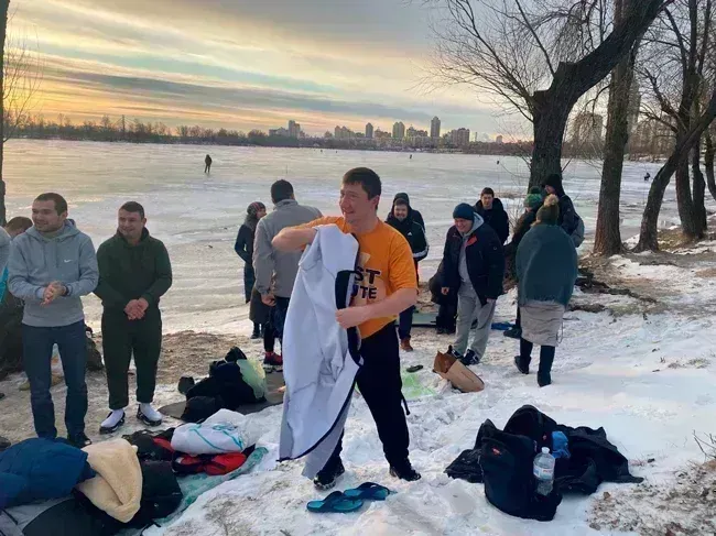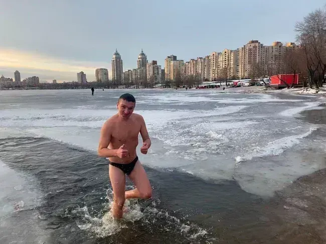 І знову Тарас Шапошніков, ні це не я вдруге виставив фото, це Тарас який був першим, замерз і пішов «грітися» воду вдруге.