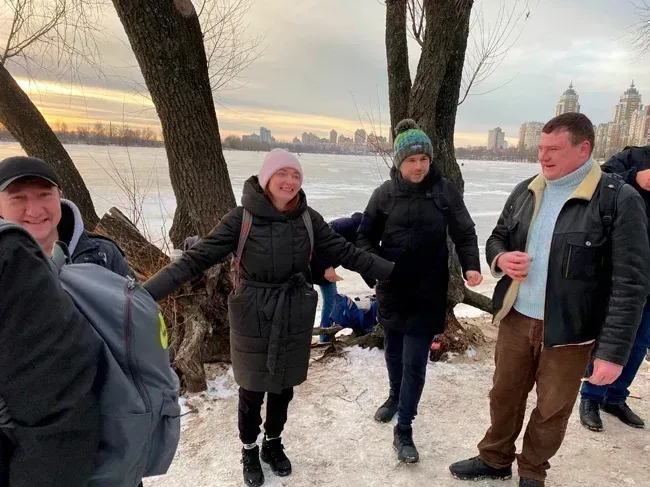 На місце купання їхали по-різному, кожен своєю дорогою, частина зібралася на Петрівці (неподалік метро)