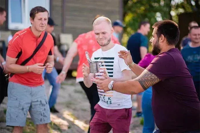 Наступний конкурс для тих, хто не боїться «забруднити руки». А ви пробували передати людині кухоль з водою підкидаючи в повітрі?