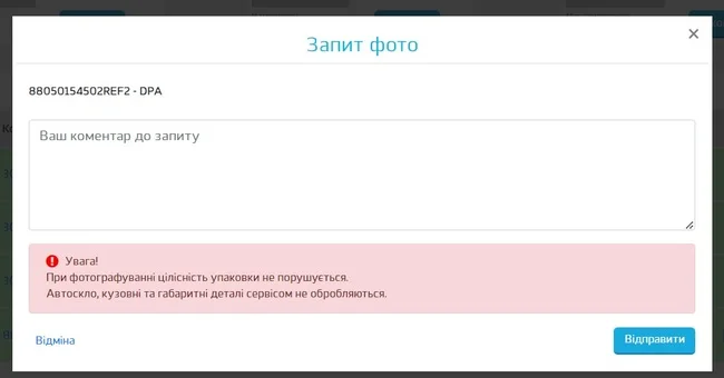 Фотографія запчастини буде відправлена через деякий час на пошту, так само її можна знайти в особистому кабінеті – розділ «запити», підрозділ – «запити на фото».