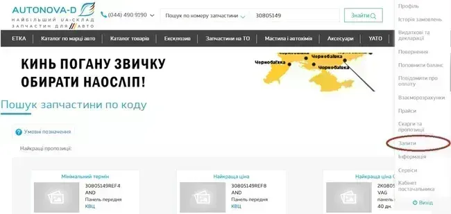 Фотографія запчастини буде відправлена через деякий час на пошту, так само її можна знайти в особистому кабінеті – розділ «запити», підрозділ – «запити на фото».