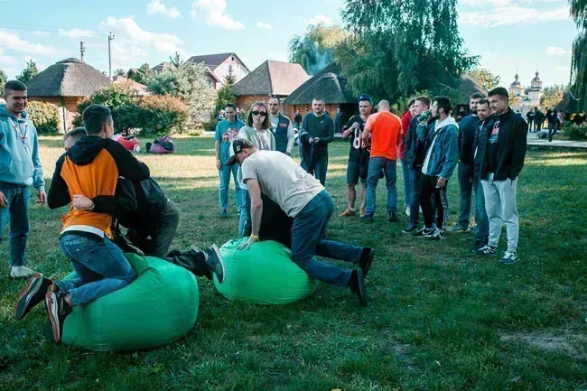 Первое задание было придумать название команды, слоган, тотемное животное и конечно выбрать капитана. Креатива нашему коллективу не занимать, какие только названия и слоганы не звучали. Нужно было не только представить свою команду, но и показать тотемное животное. Очень забавно было наблюдать за каждой командой, смех звучал на всю Рожевку.