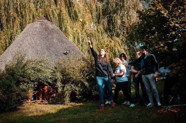 Идея следующего квеста заключалась в том, чтоб на расстоянии мячом и палкой попасть в обруч, который лежал на земле. Когда цель была достигнута, команда переходила к следующему заданию.