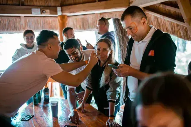 И вот когда весь коллектив в сборе, все сытые и довольные, квест начался. Вечеринка была в мексиканском стиле. Ведущий был одет в пончо и сомбреро. Фотограф сфокусировал камеру, коллектив разделился на команды согласно цвету своего браслета. Ready! Steady! Go!